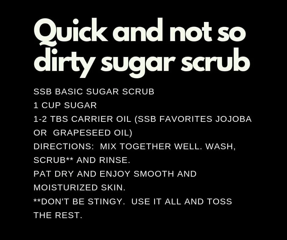 If you are looking for a quick go to recipe for an on demand quick and easy scrub here is an SSB favorite.